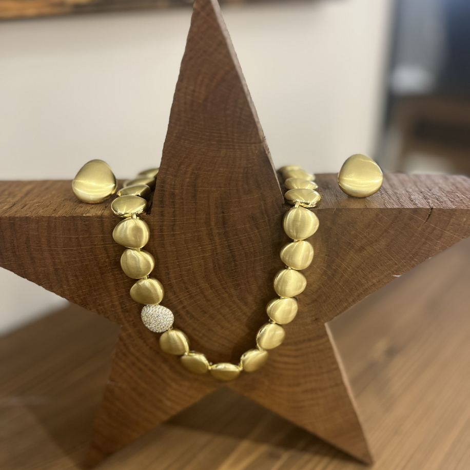 Premium İthal takım mat gold rodyum kaplamadır. Taşları Swarovski dir.