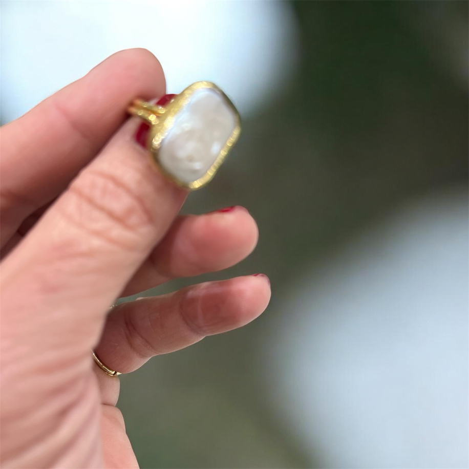 Barok inci, altın detayları Pirinç üzeri altın kaplamadır.