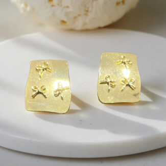 Xeneora Dikdörtgen Taşlı Modern Gold Küpe