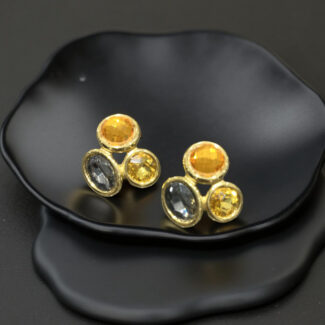 Xeneora Pirinç üzeri Altın Kaplama Kristal taşlı Çiçek Küpe